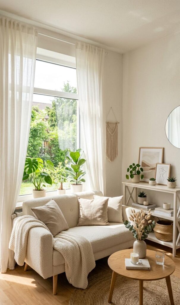 Maximizing natural light is essential for making a small living room feel larger and more inviting. Use sheer curtains or light window treatments to allow sunlight to flow freely into the space. Mirrors can also reflect light and create the illusion of a bigger room, enhancing your small living room decor ideas effortlessly. Keep furniture low-profile to avoid blocking windows and maintain an open feel. Light-colored walls and decor further amplify brightness, contributing to a fresh and airy environment. Natural light not only improves the visual appeal but also boosts mood and comfort. A well-lit space instantly feels more spacious, making it one of the most effective ways to elevate your cozy living room design.