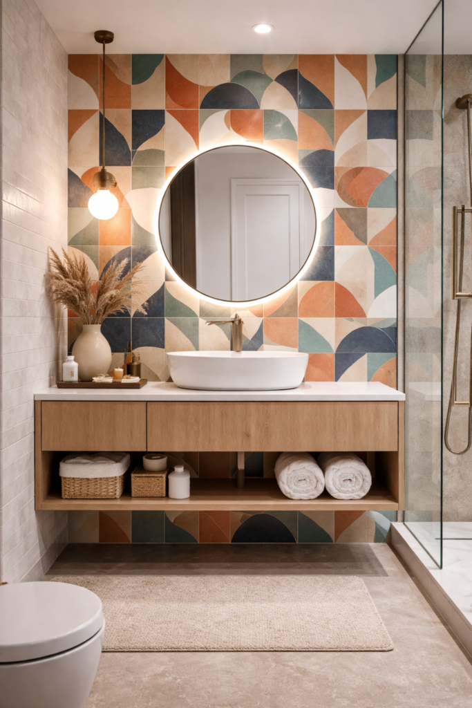 Tiles are one of the easiest ways to add personality to a bathroom. In 2026, bold tile patterns are becoming a major design statement. Geometric tiles, textured surfaces, and colorful mosaic designs can transform an ordinary bathroom into a stylish focal point. Accent walls behind the vanity or inside the shower are particularly popular. Mixing tile styles, such as matte and glossy finishes, adds depth and visual interest. Even small bathrooms can benefit from bold tile choices when balanced with neutral fixtures and simple decor.
