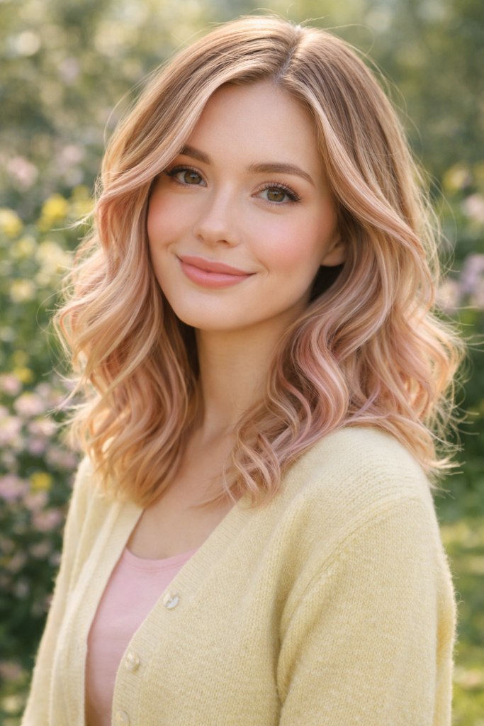 Champagne beige blonde offers a subtle shimmer that feels luxurious yet natural. This refined tone works beautifully for those transitioning from darker shades into lighter spring colors. It reflects light gently and pairs well with soft curls or sleek straight styles for a clean, modern lookSoft pastel highlights are trending for those who want something playful yet subtle. Think blush pink, lavender, or peach tones blended delicately into blonde or light brown bases. These hues are designed to fade gracefully, offering a fun seasonal change without long-term commitment.
