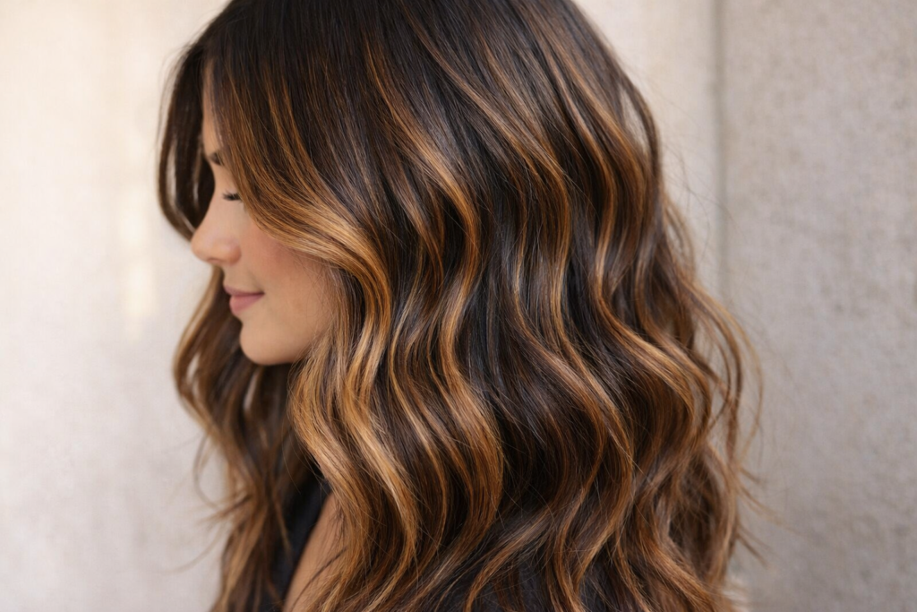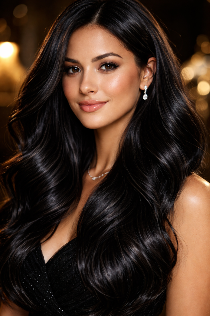 For bold personalities, glossy jet black is returning with high shine and healthy texture. The key for 2026 is dimension and gloss rather than flat color. Deep conditioning and shine-enhancing treatments make this dramatic shade look luxurious and vibrant for spring evenings.
