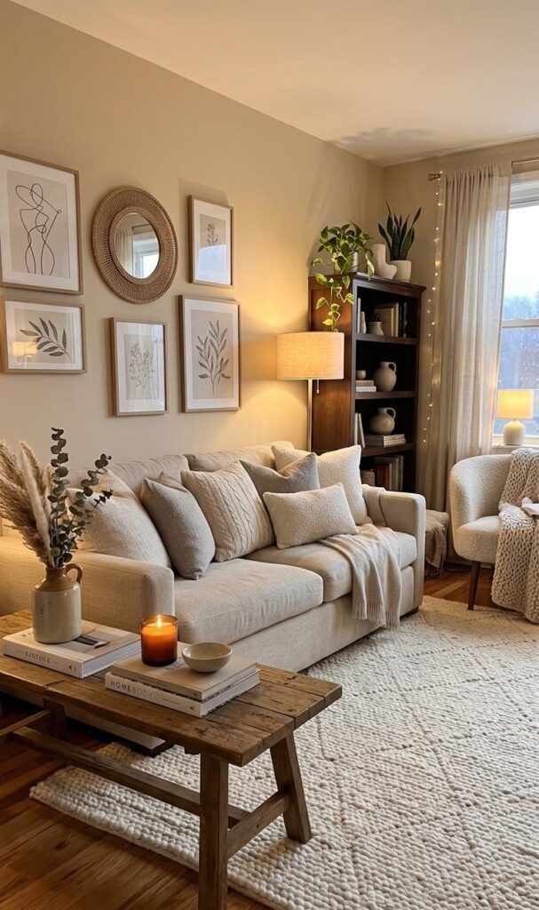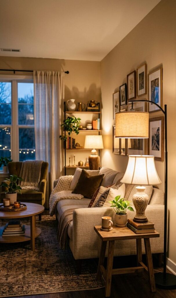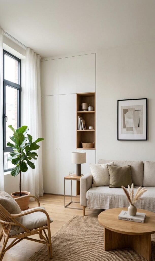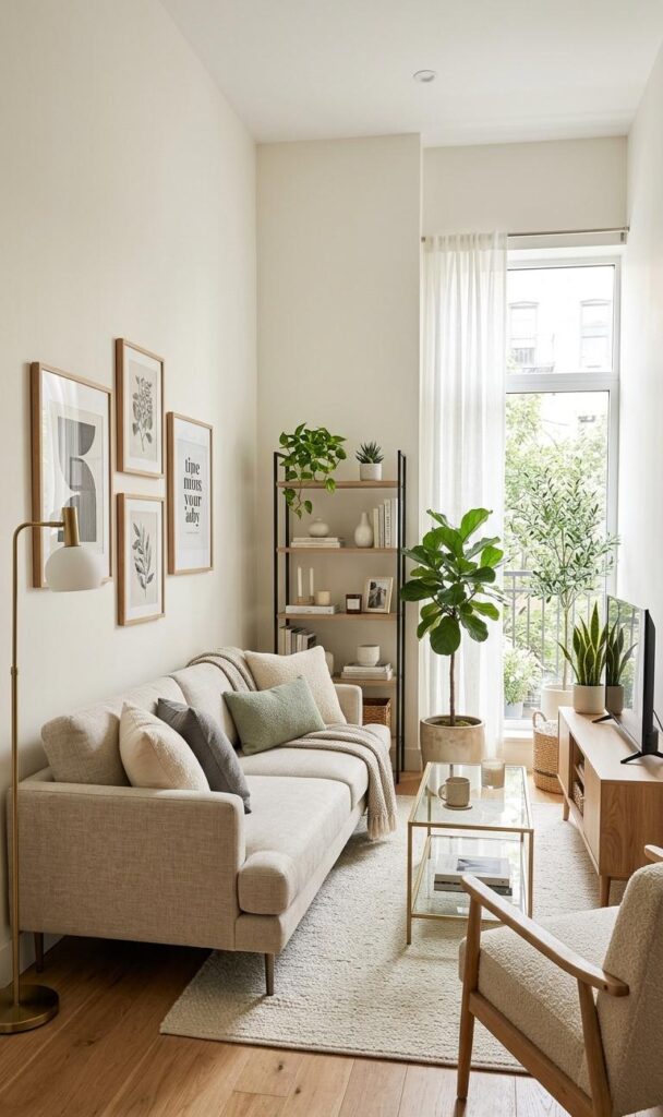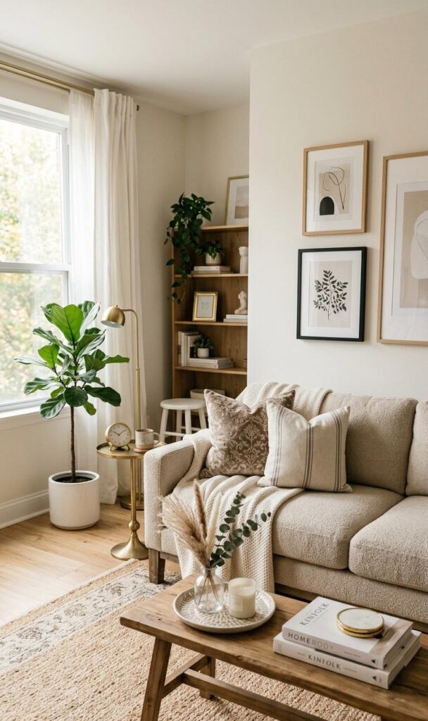 Finally, add personal touches to make your chic small living room decor truly yours. Use books, candles, or framed photos in a minimal way. Avoid overcrowding to maintain elegance. Personalization adds warmth and character while keeping the design refined. This balance is key in stylish small living room ideas trending today.