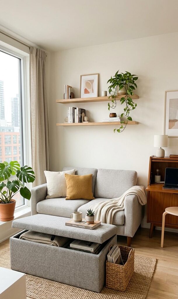 Incorporating multi-functional furniture is key to achieving a stylish yet practical small living space. Opt for ottomans with storage, foldable tables, or sofas that double as beds. These pieces not only save space but also enhance the overall chic living room decor aesthetic. Look for sleek designs with clean lines to maintain a clutter-free environment. Furniture with hidden storage helps keep essentials organized without compromising style. This trend is popular in small apartment decor ideas, where maximizing space is essential. By combining beauty and functionality, you can create a space that feels both elegant and efficient. Always prioritize quality over quantity for a refined look.