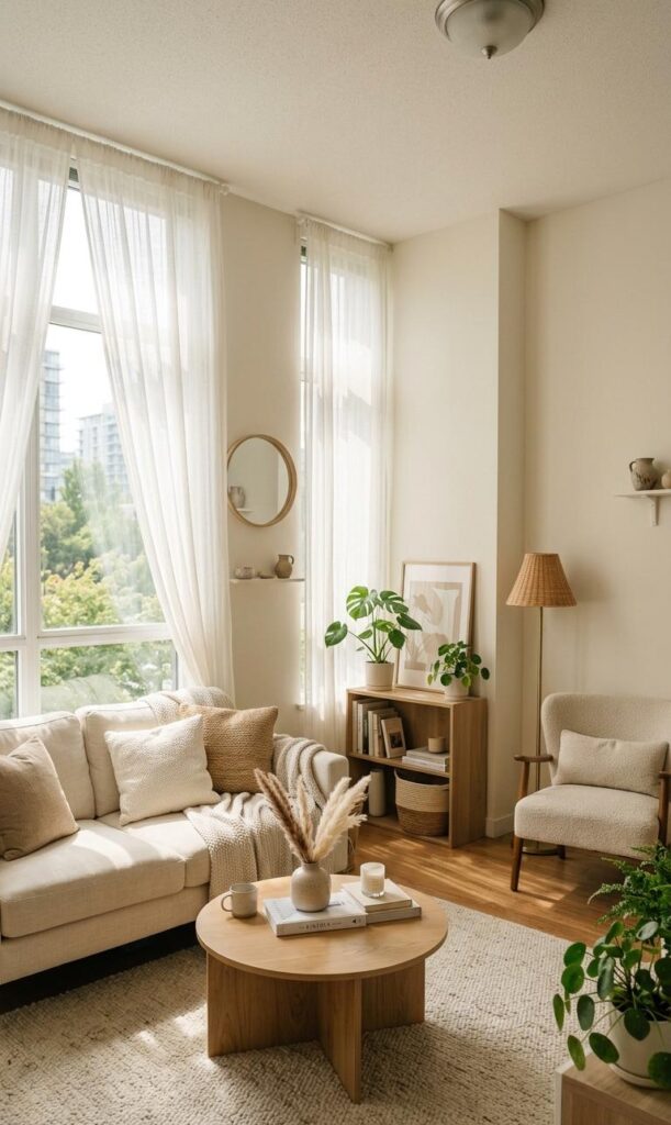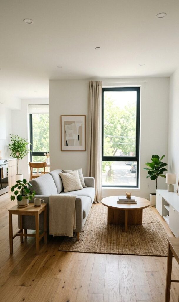 The final key to achieving a bright small living room interior is keeping decor simple and intentional. Avoid over-decorating, as too many items can create visual clutter and reduce brightness. Focus on a few statement pieces that enhance the overall aesthetic while maintaining a clean look. Trending minimal home decor ideas emphasize quality over quantity, ensuring every element serves a purpose. Choose decor that complements your color palette and reflects light, such as glass vases or metallic accents. This approach creates a harmonious and balanced space that feels open, stylish, and inviting, making your small living room a perfect example of modern bright interior design.