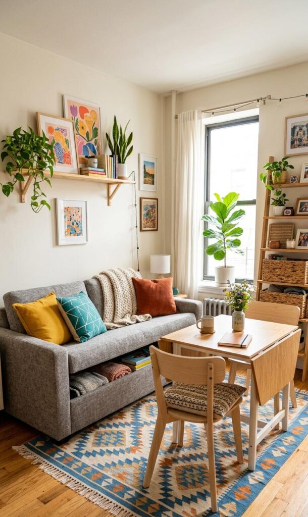 Incorporating multi-functional furniture is a smart way to maintain a bright and organized living room. Pieces like storage ottomans, sofa beds, and foldable tables help reduce clutter, which is crucial for keeping a space visually open and airy. Clutter can block light and make a room feel smaller, so choosing practical furniture aligns with trending space-saving living room ideas. Opt for furniture with slim profiles and light finishes to complement the bright aesthetic. This approach not only enhances functionality but also contributes to a clean and modern look. By maximizing utility without overcrowding, you create a balanced environment that feels spacious, efficient, and perfectly suited for small living rooms aiming for brightness and style.