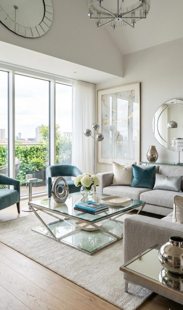 Reflective and glossy surfaces play a significant role in enhancing bright interior decor. Materials like glass, acrylic, and polished metals bounce light around the room, increasing overall illumination. A glass coffee table or glossy cabinets can subtly elevate your small living room design without adding visual weight. Trending modern home decor ideas often include metallic accents such as gold or chrome to add sophistication while maintaining brightness. These elements create a sleek and contemporary feel, making your living room look more refined. By incorporating reflective surfaces thoughtfully, you can achieve a luminous and stylish environment that feels both spacious and inviting, even in limited square footage.