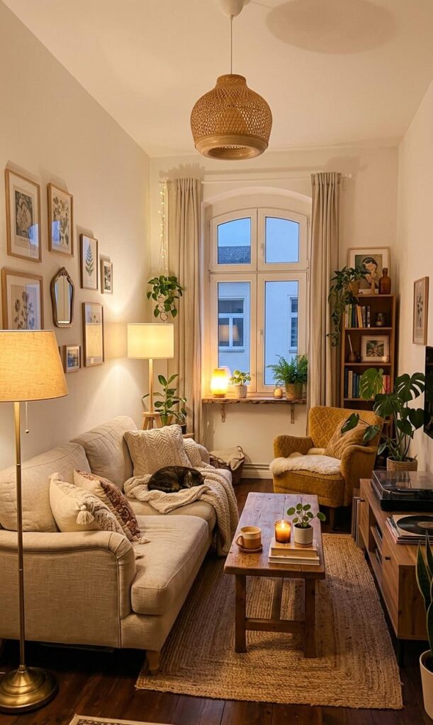Creating a bright interior starts with maximizing natural light, one of the most effective small living room decor ideas. Choose sheer or lightweight curtains instead of heavy drapes to allow sunlight to flow freely into your space. Position mirrors strategically across from windows to reflect light and make the room feel larger. Using light-colored walls such as white, cream, or soft pastels enhances brightness and creates an airy ambiance. This bright living room design approach is trending because it transforms even the smallest spaces into welcoming environments. Avoid blocking windows with bulky furniture, and instead opt for minimal layouts that allow light to travel throughout the room effortlessly, making your living space feel fresh, open, and visually spacious.