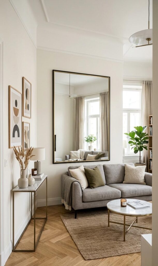 Mirrors are a powerful design tool for enhancing small spaces. Placing a large decorative mirror opposite a window reflects light and visually expands the room. This simple trick creates depth and makes your living area feel more spacious. You can also experiment with mirror wall decor to add a stylish element. Trending keywords like mirror decor ideas, small room illusion design, and space-enhancing decor are perfect for this strategy. Choose frames that match your interior style, whether modern, boho, or minimalist. Mirrors not only improve lighting but also add elegance, making your small living room look sophisticated and thoughtfully designed.