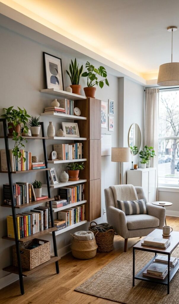 When floor space is limited, think vertically. Installing wall-mounted shelves or tall storage units helps you utilize unused wall space effectively. This approach keeps your room organized while maintaining a clean and uncluttered look. Display books, plants, or decorative items to enhance your decor. Trending keywords like vertical storage ideas, wall shelf decor, and small space organization highlight this smart solution. Avoid bulky cabinets that take up valuable floor area. Instead, choose sleek designs that blend seamlessly with your interior. Using vertical space not only improves storage but also adds visual interest, making your living room both functional and stylish.