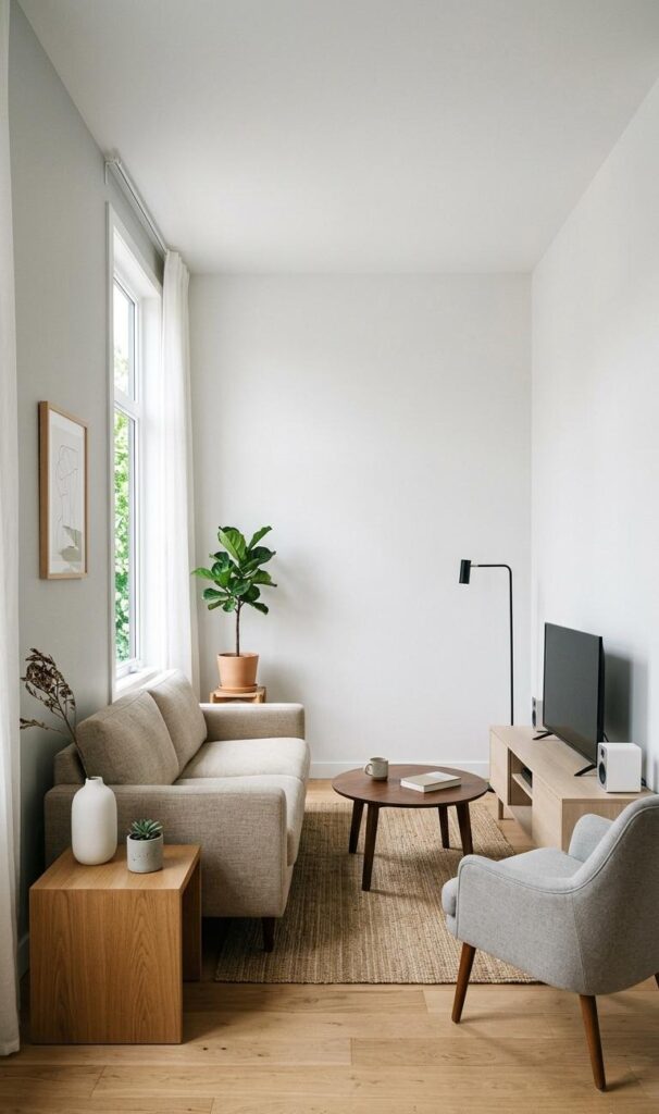Color plays a crucial role in transforming a small living room into a relaxing retreat. Opt for light color palettes such as whites, creams, and soft pastels to create an illusion of space. These tones reflect natural light, making your room appear larger and more open. You can add subtle contrast with accent decor pieces like cushions or throws in muted shades. Trending keywords like light color living room, neutral decor ideas, and airy interior design align perfectly with this approach. Avoid overly dark tones as they can make the space feel cramped. Instead, blend textures and tones to maintain warmth while keeping the environment fresh, bright, and inviting for everyday comfort.