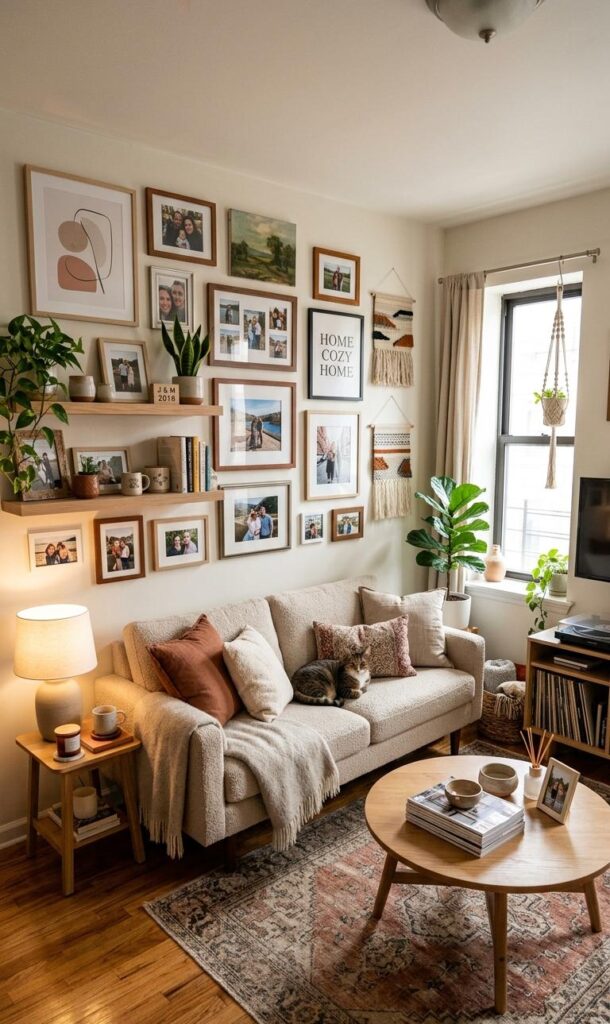 Adding personal touches makes your living room feel truly yours. Display family photos, artwork, or souvenirs that reflect your personality and style. Personalized decor enhances emotional connection while maintaining visual appeal. Trending keywords like personalized home decor, unique living room ideas, and custom interior styling highlight this approach. Avoid overcrowding your walls; instead, curate a meaningful collection of items. This balance ensures your space remains stylish without feeling cluttered. Personalization adds warmth and character, making your small living room a comfortable and inviting place for both you and your guests.