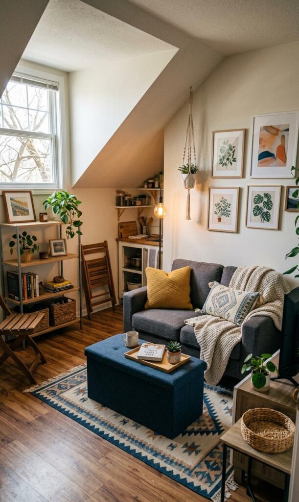 One of the smartest affordable living room ideas is investing in multi-functional furniture. Pieces like storage ottomans, sofa beds, or nesting tables serve multiple purposes, saving both space and money. This is ideal for small spaces where every item should be practical. A storage coffee table can hide clutter while keeping essentials within reach. Look for budget-friendly options at local markets or thrift stores. Multi-functional furniture reduces the need to buy extra pieces, making your room more efficient and stylish. This approach is perfect for achieving a modern look while sticking to a tight budget.