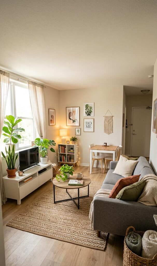 Creating a stylish space doesn’t require a big budget—small living room decor ideas on a budget often start with minimalism. Focus on fewer, high-impact pieces that make your room feel open and uncluttered. Choose neutral tones, clean lines, and simple furniture arrangements to maximize space. Minimal decor reduces the need for excessive spending while still delivering a modern aesthetic. Incorporate affordable accents like throw pillows or a small plant to add personality. This approach not only saves money but also enhances comfort and functionality. A minimalist style is perfect for making your small living room feel airy and elegant without overspending.