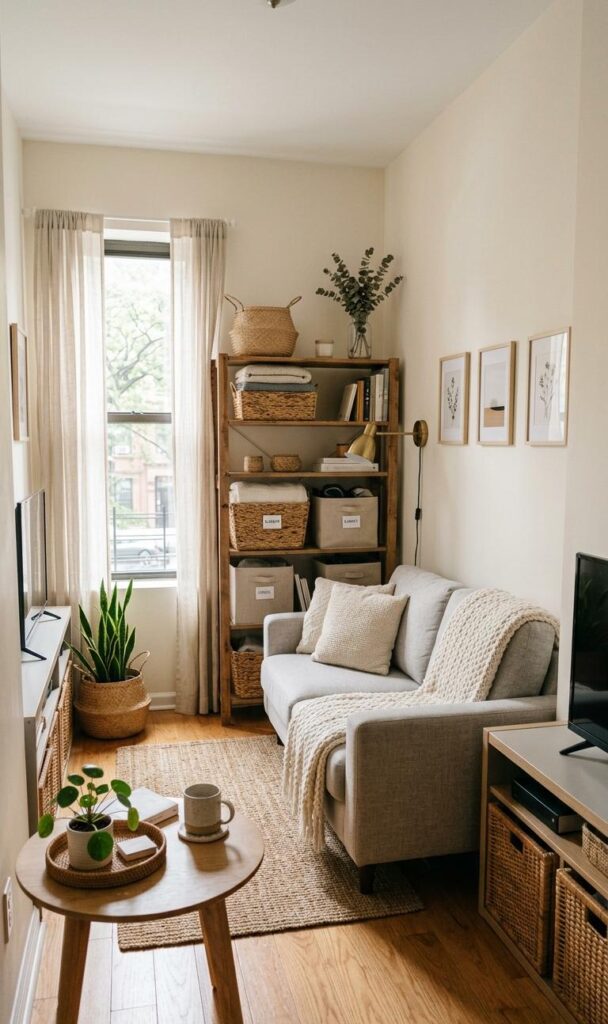 Organization is key to achieving affordable small living room decor. Use baskets, shelves, and storage solutions to keep your space tidy. A clutter-free room looks bigger and more stylish. Smart storage options help maximize space while maintaining a clean look. This approach doesn’t require a big budget—just thoughtful planning. Keeping your living room organized enhances both functionality and aesthetics. It’s the final step in creating a beautiful and budget-friendly space.