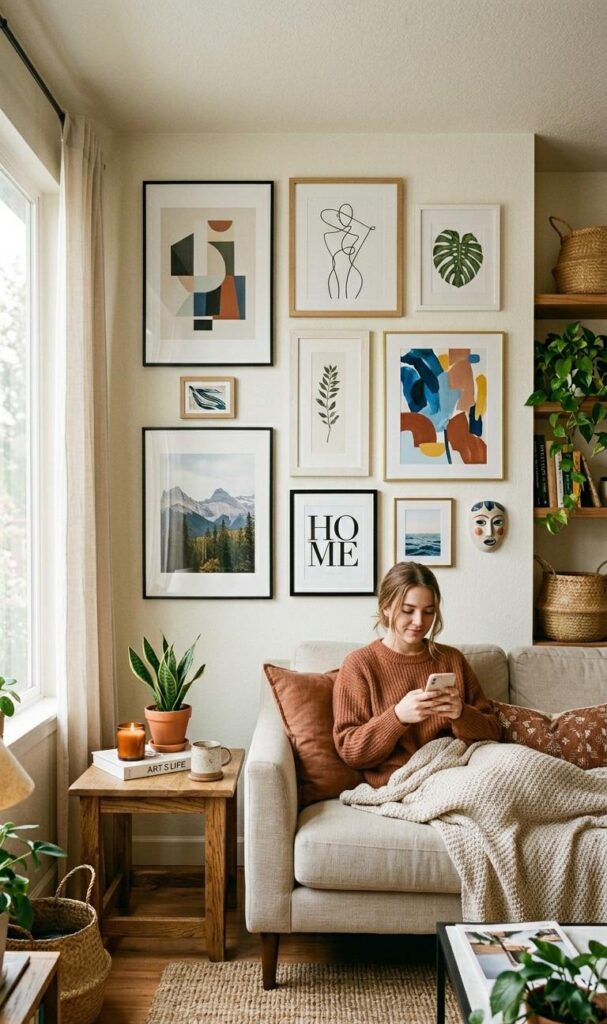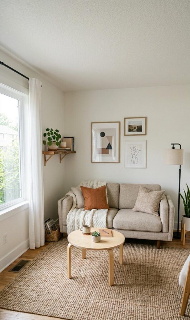 Wall art is a great way to express your style without taking up floor space. Choose pieces that reflect your personality and complement your decor. A gallery wall or a single statement artwork can serve as a focal point. Incorporating wall decor ideas, modern art trends, and small space styling adds character to your living room. Keep the arrangement balanced and avoid overcrowding. Lightweight frames and minimal designs work best. Wall art enhances visual appeal and creates a personalized atmosphere, making your small living room feel unique and inviting.