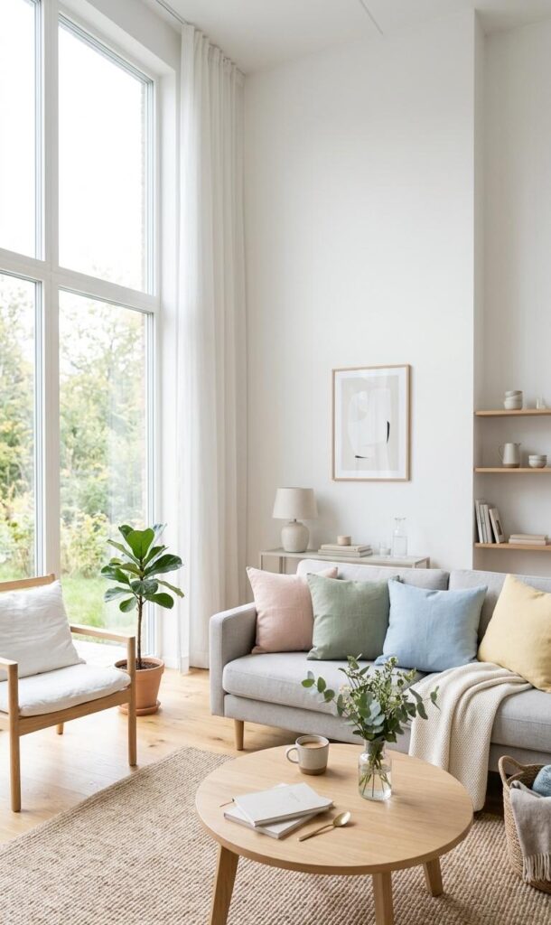 Choosing the right color palette can dramatically impact how spacious your living room feels. Light colors such as whites, soft grays, and pastels reflect more light, making the room appear larger and brighter. Avoid dark shades on walls as they can make the space feel enclosed. Pair neutral tones with subtle accents for a balanced look. Using light color schemes, small space color ideas, and minimalist decor trends enhances openness. You can also incorporate textures like soft rugs or cushions to add depth without overwhelming the room. A consistent color palette creates harmony, making your small living room feel more expansive and visually pleasing.