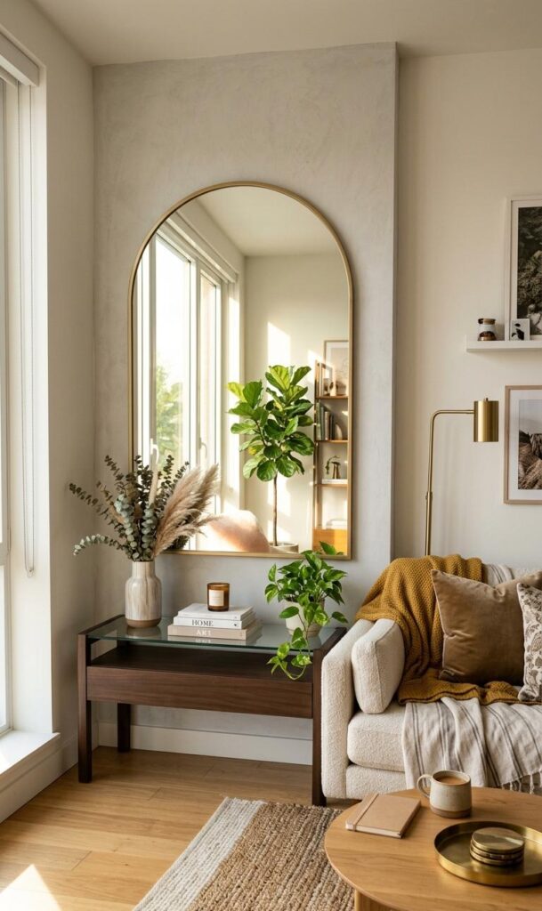 Mirrors are one of the most effective tricks for making a small living room look bigger. By reflecting light and views, they create the illusion of depth. Place a large mirror opposite a window to maximize natural light. Decorative mirrors also serve as stylish focal points. Incorporating mirror decor ideas, small space hacks, and illusion design techniques can transform your room instantly. Choose frames that match your decor style, whether modern, rustic, or classic. Avoid overcrowding the walls with too many mirrors; one or two statement pieces are enough. This simple addition can significantly enhance brightness and openness.
