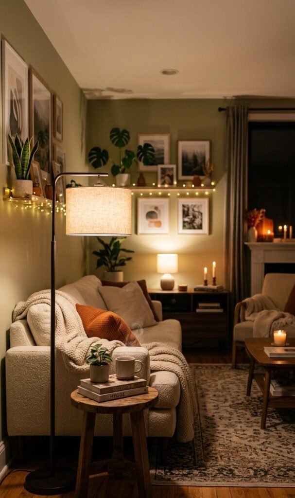 Lighting plays a crucial role in transforming small spaces. Use a combination of natural and artificial lighting to create depth and warmth. Floor lamps, wall sconces, and LED strips are excellent options. Avoid bulky fixtures that take up space. Incorporating smart lighting ideas, ambient lighting decor, and small room lighting solutions improves both functionality and aesthetics. Layered lighting adds dimension, making the room feel larger and more inviting. Choose warm tones for a cozy atmosphere or cool tones for a modern look. Proper lighting can completely change the mood and perception of your living room.