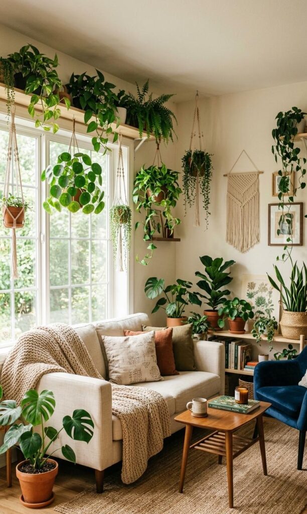 Adding greenery can instantly breathe life into a small living room. Plants improve air quality and create a refreshing ambiance. Choose compact plants like succulents, snake plants, or hanging greenery. Using indoor plant decor, small space greenery, and biophilic design trends enhances the room’s aesthetic. Place plants on shelves, corners, or windowsills to save space. Avoid overcrowding with too many plants; a few well-placed ones are enough. Greenery adds color, texture, and a natural element that makes your living space feel vibrant and relaxing.