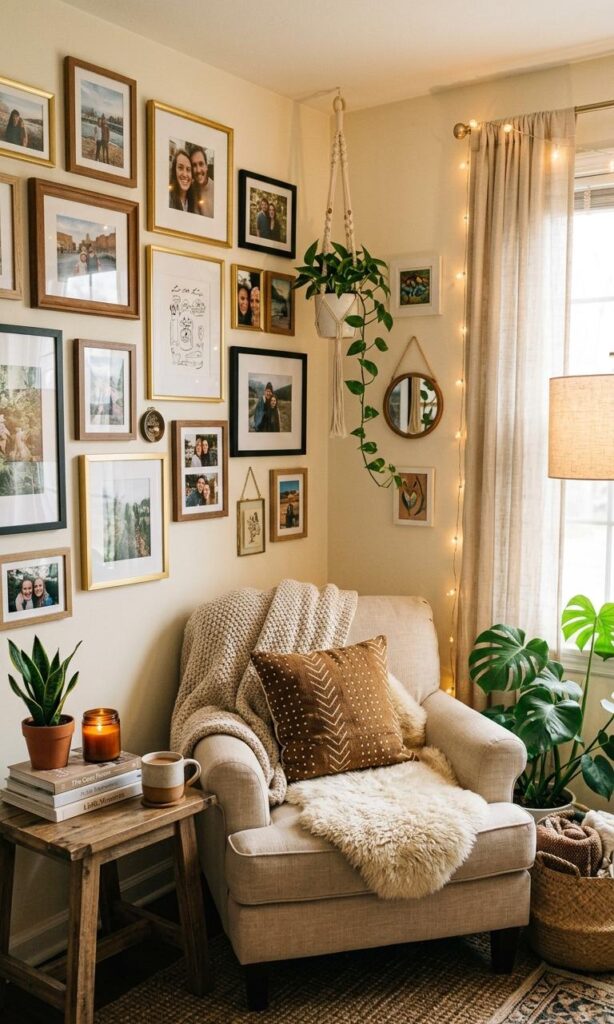 Personalizing your space is key to creating a truly cozy living room corner. Incorporate items like family photos, artwork, or souvenirs that reflect your personality. These elements make your living room feel unique and inviting. Keep the arrangement simple to avoid clutter. Personal touches add warmth and emotional value to your decor. They also make your space more comfortable and enjoyable. This approach is perfect for creating a home that feels authentic and lived-in.