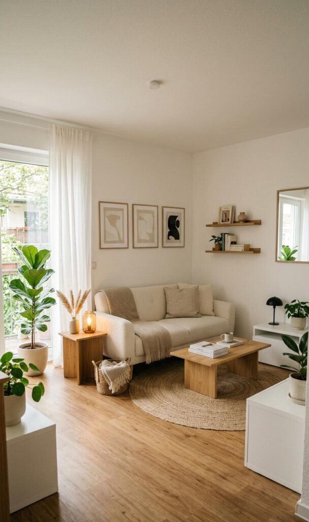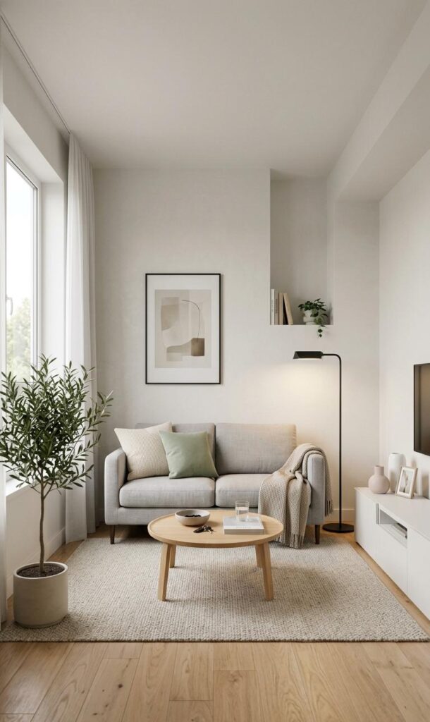 Creating an elegant small living room decor begins with a minimalist approach that focuses on simplicity and functionality. A clutter-free space instantly looks larger and more refined. Use neutral tones like beige, ivory, and soft gray to establish a calming foundation. Incorporate sleek furniture with clean lines to maintain a polished look. Add a statement piece such as a textured rug or a modern coffee table to enhance visual interest. This minimalist living room design is trending because it combines beauty with practicality. Keep decor limited but impactful, ensuring each element serves a purpose. Proper lighting, especially natural light, plays a key role in elevating the elegance of the space.