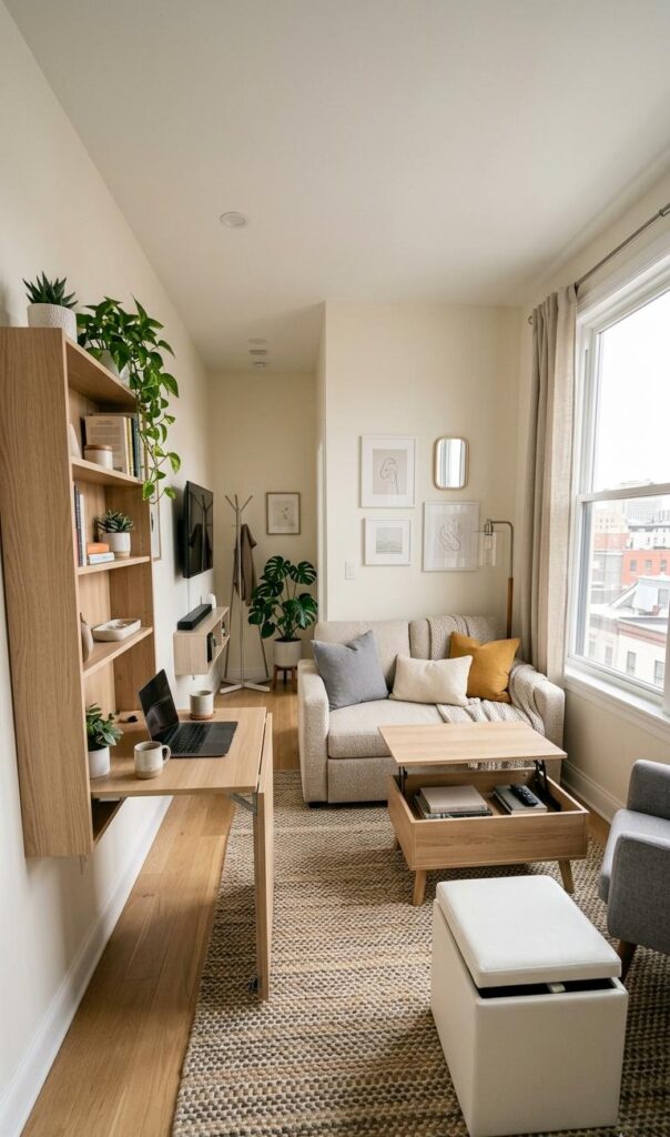 Creating a small living room with functional decor starts with smart space planning. Instead of overcrowding, focus on optimizing every inch using space-saving furniture and strategic layouts. Arrange seating around a focal point like a TV or coffee table to enhance usability. Use multi-purpose furniture such as storage ottomans and foldable tables to maximize efficiency. Keeping pathways clear ensures better movement and improves the overall feel of the room. Neutral tones paired with clever furniture placement can make the space feel larger and more inviting. Functional decor is not just about aesthetics—it’s about practicality combined with style. By choosing furniture that serves multiple purposes, you can transform even the smallest living room into a comfortable and efficient space.