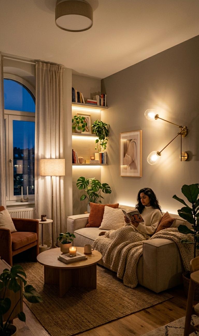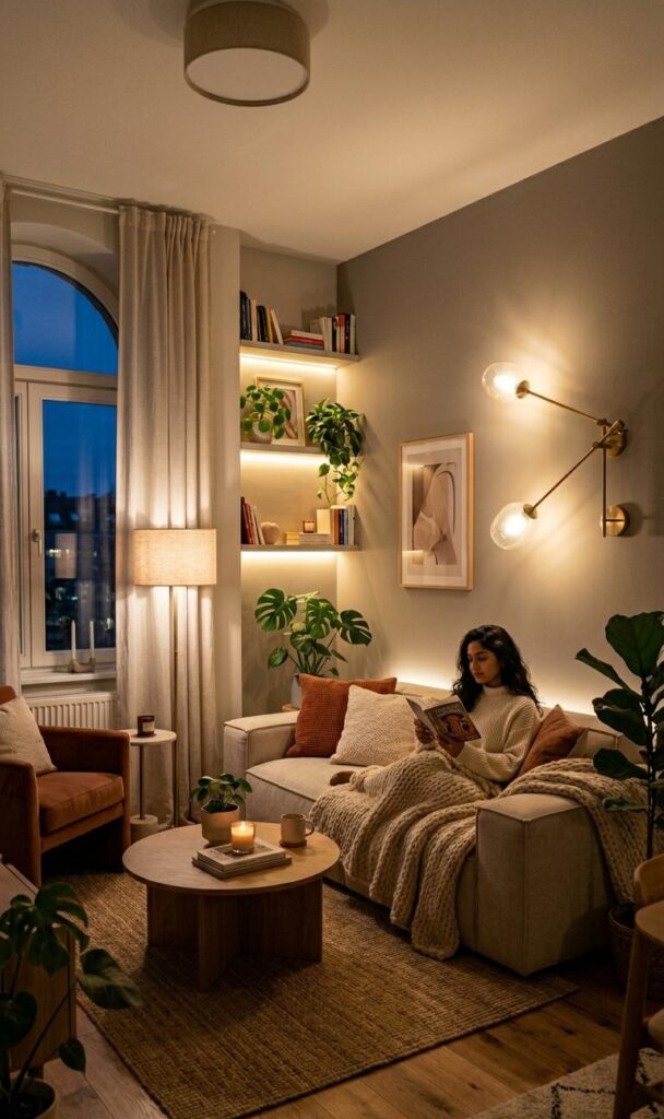 Lighting plays a key role in small living room decor with functionality. Use layered lighting, including ambient, task, and accent lighting, to create a versatile space. Wall sconces and floor lamps save space compared to bulky table lamps. LED strip lighting can highlight shelves and add a modern touch. Functional decor should enhance usability, and proper lighting ensures every corner of the room is well-lit. Natural light should be maximized with sheer curtains. Smart lighting systems allow you to adjust brightness according to your needs. A well-lit room feels more spacious and inviting. By combining different lighting elements, you can create a warm and functional atmosphere that adapts to various activities.