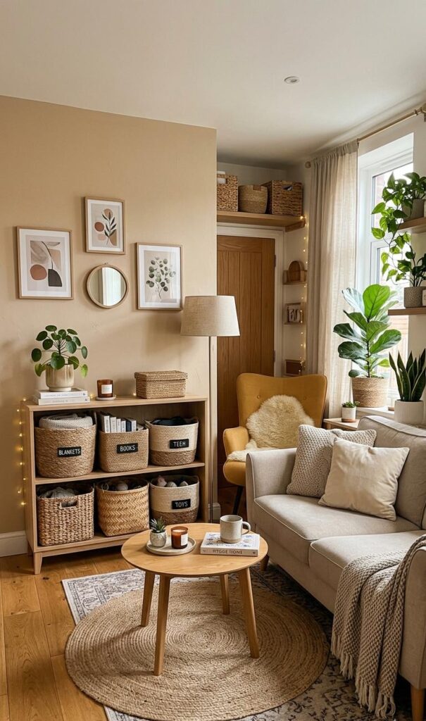 Storage can be stylish too. Decorative baskets and organizers are great for maintaining order in a small living room. Use them to store blankets, magazines, or toys while adding texture to your decor. Choose materials like wicker, fabric, or metal that complement your design theme. Functional decor should seamlessly blend storage with aesthetics. Placing baskets under tables or beside sofas keeps essentials within reach. These elements help reduce clutter while enhancing the room’s visual appeal. Organized spaces feel more relaxing and inviting. By using decorative storage solutions, you can maintain a tidy and stylish living room effortlessly.
