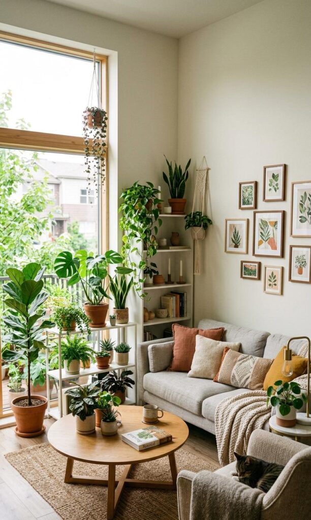 Adding greenery is a refreshing element in modern small living room ideas. Indoor plants bring life, color, and a natural touch to your space. Choose low-maintenance plants like snake plants or pothos for easy care. Place them on shelves, corners, or hanging planters to save space. Plants not only improve air quality but also enhance the overall ambiance. Combining greenery with modern decor creates a harmonious balance between nature and design. This simple addition can make your small living room feel more vibrant, inviting, and stylish.