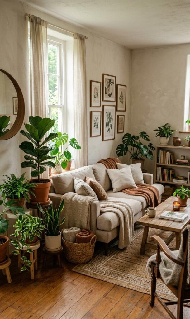 Bringing nature indoors is a key trend in neutral home decor ideas. Incorporate elements like wooden furniture, indoor plants, and stone accents to add warmth and life. These natural touches complement neutral tones beautifully, creating a balanced and calming environment. A small potted plant or a wooden coffee table can make a big difference in a small cozy living room. This style is inspired by organic modern decor, which blends simplicity with natural beauty. Plants also improve air quality, making your space healthier and more refreshing. Keep the color palette soft and earthy to maintain harmony. The combination of natural elements and neutral shades creates a timeless, elegant look that feels both modern and grounded.