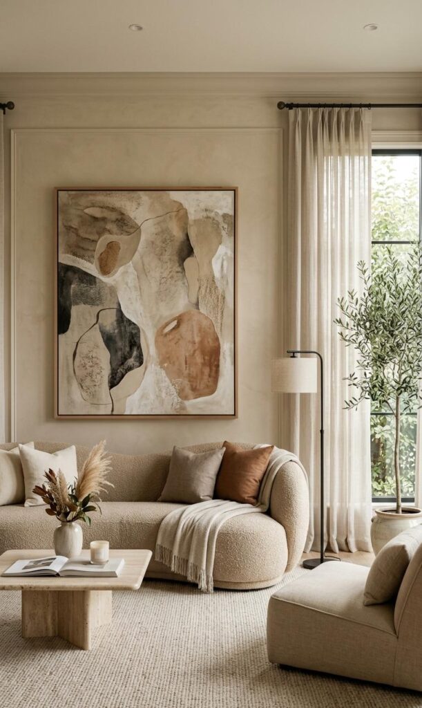 Finally, make your neutral living room decor truly yours by adding personal touches. Use items like photo frames, books, or travel souvenirs in neutral tones. This adds character and warmth to the space. Personalization is an important trend in home decor inspiration, as it makes your space feel unique. Keep the color palette consistent to maintain harmony. This approach allows you to express your personality without cluttering the room. Neutral accents ensure that everything blends seamlessly. The result is a cozy, stylish living room that reflects your taste while staying modern and elegant. It’s the perfect balance between functionality and personal expression.