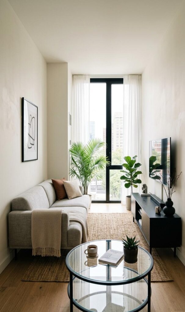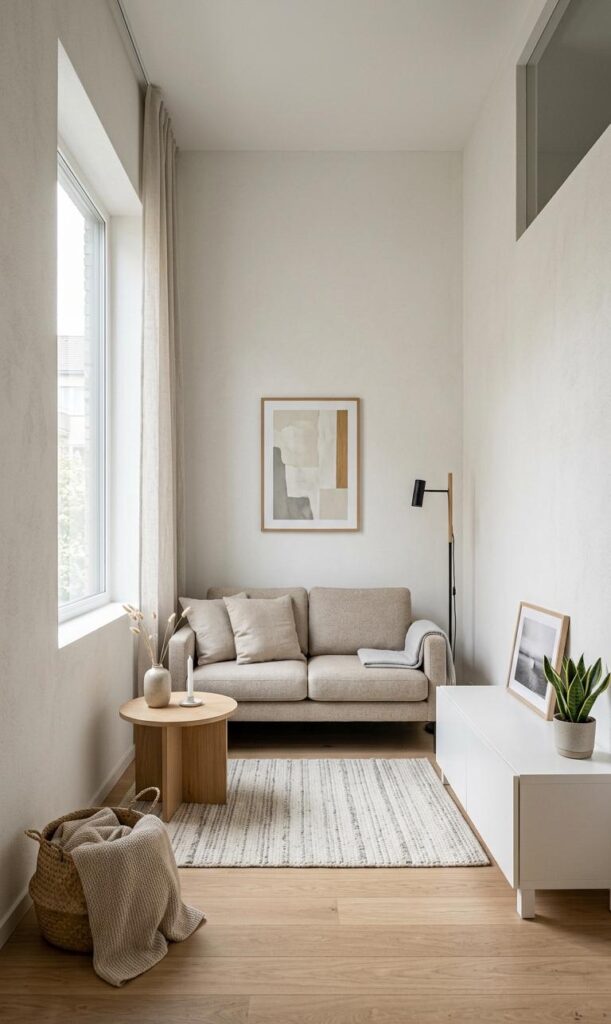 Less is more when it comes to small spaces. Embrace minimalist decor ideas to keep your living room uncluttered and stylish. Focus on a few statement pieces rather than overcrowding the room with decorations. Neutral tones, simple patterns, and functional items create a harmonious look. This small living room hack ensures your space feels open and organized. Minimalism also makes cleaning and maintenance easier, adding to the practicality of your design.
