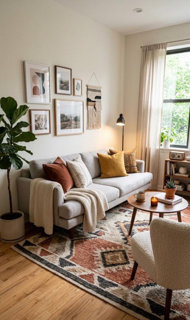 Rugs are a simple yet powerful way to define areas within a small living room. A well-placed rug can anchor your seating area and add texture to the space. Choose rugs with light colors or subtle patterns to maintain an open feel. This smart decor hack helps create visual boundaries without using walls. Rugs also add comfort and warmth, making your living room more inviting. Ensure the rug size complements your furniture arrangement for a balanced look.