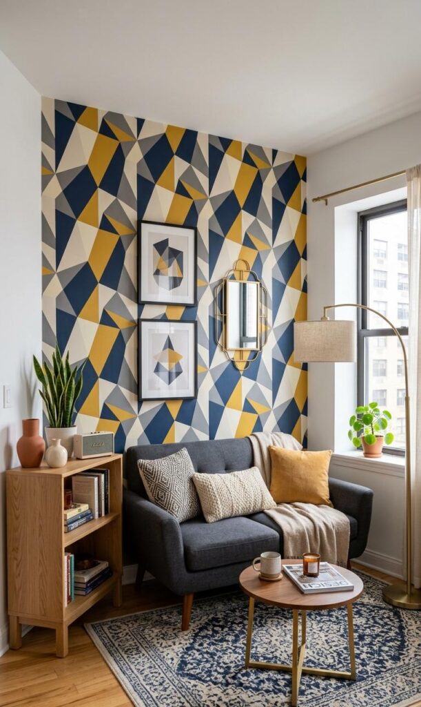 A statement wall is one of the most effective small living room decor ideas to create a unique style without taking up physical space. Whether you choose bold wallpaper, textured paint, or wooden panels, an accent wall adds depth and personality instantly. Trending styles include geometric patterns, earthy tones, and artistic murals that reflect your personal taste. This technique draws attention away from the room’s size and toward its design. Pair the wall with minimal furniture to avoid visual clutter. Incorporating this accent wall trend helps transform a plain living area into a stylish focal point, making your small living room feel curated and thoughtfully designed while maintaining a cozy and modern vibe.