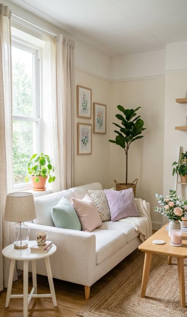 Color selection is essential in small living room design. Light and neutral tones like white, cream, and pastel shades make a room feel more spacious and open. These colors reflect light effectively, enhancing brightness and creating a calming atmosphere. Trending palettes include soft beige, blush pink, and muted greens that add subtle character without overpowering the space. Pair light walls with matching furniture and minimal decor for a cohesive look. This strategy is widely used in modern interiors to maximize visual space. By choosing the right color scheme, you can transform your small living room into an elegant and airy retreat that feels both stylish and comfortable.
