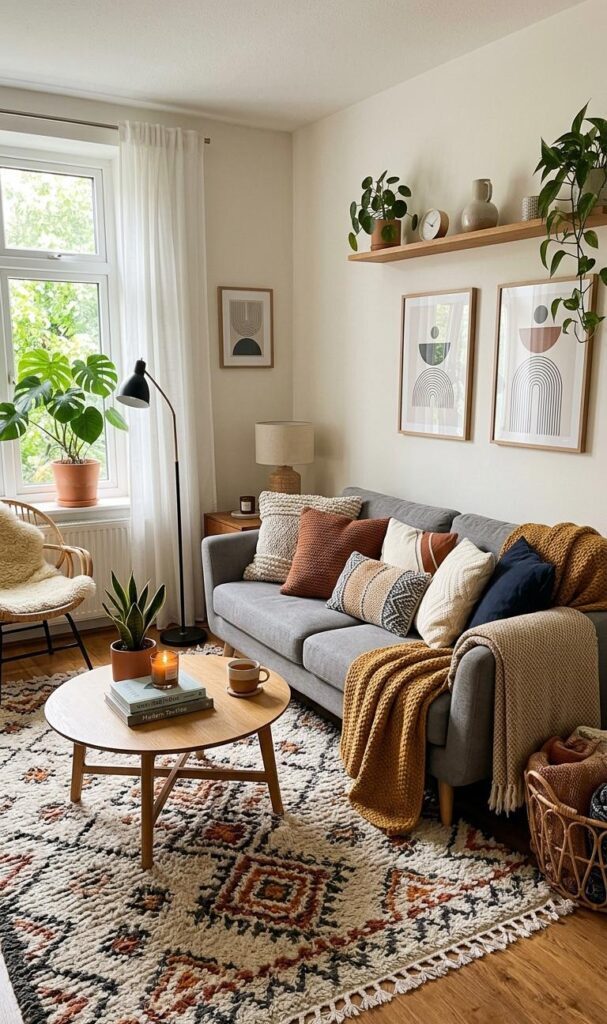 Textures are a key element in creating a unique small living room decor. Layering different materials like soft rugs, knitted throws, and velvet cushions adds depth and warmth to your space. Trending texture combinations include natural fibers, faux fur, and woven fabrics that enhance visual interest. Even in a small room, mixing textures can make the design feel rich and dynamic without cluttering it. Use a neutral base and introduce textures through accessories to maintain balance. This approach allows you to experiment with style while keeping the space functional. Incorporating textures ensures your living room feels cozy, stylish, and thoughtfully designed with a modern touch.