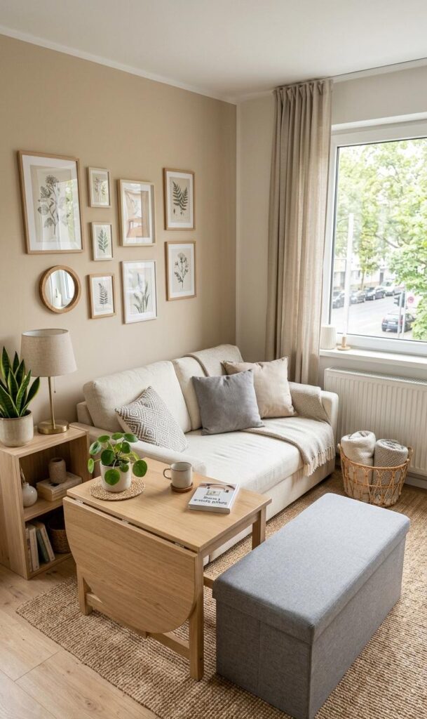 Adding personalized decor ideas is essential for making your small living room feel like home. However, it’s important to choose items that are both decorative and functional. Multi-purpose decor, such as decorative storage boxes or stylish organizers, helps maintain a balance between aesthetics and practicality. This approach aligns with functional styling, a key trend in modern interiors. By carefully selecting decor pieces, you can showcase your personality without cluttering the space. This final touch brings warmth and character to your living room while ensuring it remains organized and visually appealing.