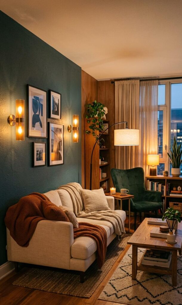 Lighting plays a crucial role in small room decor, as it can significantly impact the perception of space. Layered lighting, including ambient, task, and accent lights, creates depth and enhances the room’s overall look. Wall sconces and floor lamps are excellent choices for saving space while providing adequate illumination. Modern lighting ideas focus on functionality and style, making them perfect for compact living areas. Proper lighting not only brightens the room but also highlights key design elements, making the space feel larger and more inviting. Investing in smart lighting solutions is a simple yet effective way to improve your living room’s ambiance.