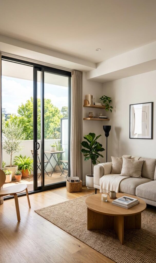 Sliding doors are a practical solution for space-saving design in small living rooms. Unlike traditional doors, they don’t require extra space to open, making them ideal for compact areas. Glass sliding doors also allow natural light to flow through, enhancing the room’s brightness and openness. This feature is commonly used in modern small homes to maximize functionality without sacrificing style. Incorporating sliding doors can significantly improve the layout and usability of your living space. It’s a smart and stylish addition that aligns with contemporary interior design trends.
