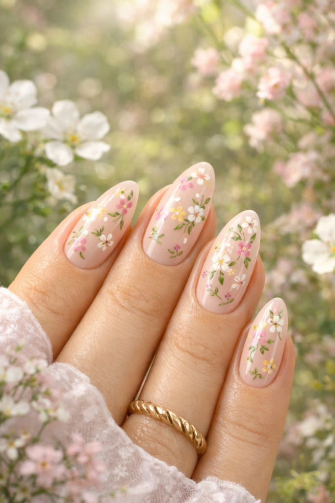 Nothing says spring like delicate floral nail designs. Tiny daisies, roses, and cherry blossoms can transform your manicure into a mini garden. These designs add a feminine and romantic vibe that works beautifully with spring outfits and dresses.