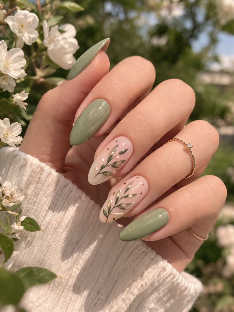 9. Green-Inspired Nature Nails