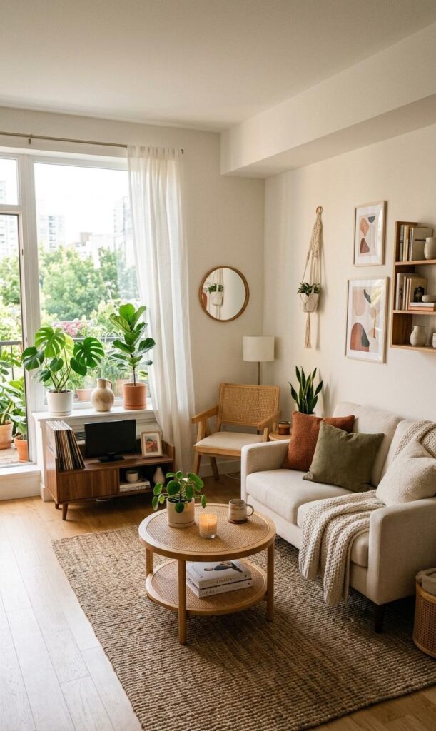 Indoor plants are an excellent way to enhance small living room decor. Adding greenery brings life, color, and freshness to your space. Trending keywords include indoor plants decor, green living room ideas, and natural home styling. Choose low-maintenance plants like succulents or snake plants for easy care. Place them on shelves, tables, or corners to maximize space. Plants improve air quality and create a relaxing environment. Even a small touch of greenery can make a big impact, adding vibrancy without clutter. This affordable decor idea is perfect for creating a stylish and refreshing living room atmosphere.